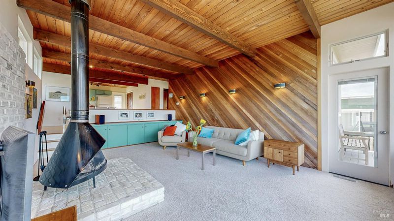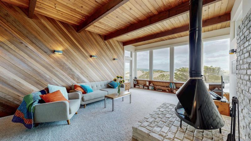 First time on the market since the home was built in 1972, this oceanfront home is situated in a coveted pocket of Dillon Beach known as Portola Beach. Magnificent ocean and bay views framed by large picture windows span Pt. Reyes and Bodega Head Peninsulas. Flying coastal birds and swaying dune grasses capture nature's rhythm from this front row seat. Inspired by Sunset Magazine back in the day, this 1970s coastal modern-styled home features high open beam ceiling and wood sourced paneling of pecan, redwood, and Douglas Fir. A balcony opens from living room extending living space bringing in the outdoors. The back deck, with kitchen access, has a privacy wind protection screen - perfect for grilling and relaxing. On cool evenings, cozy up to the fireplace in the living room. The allure of the ocean with the sound of breaking waves and stunning sunsets await you.