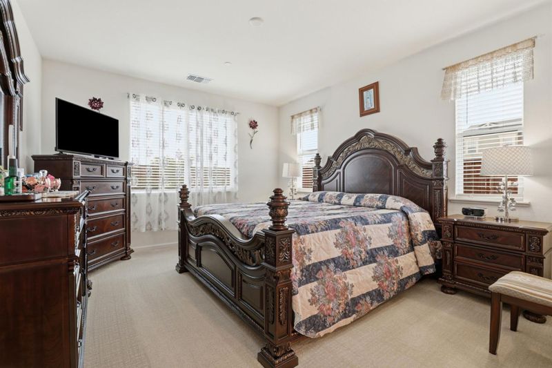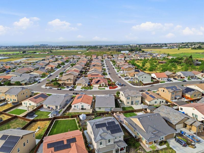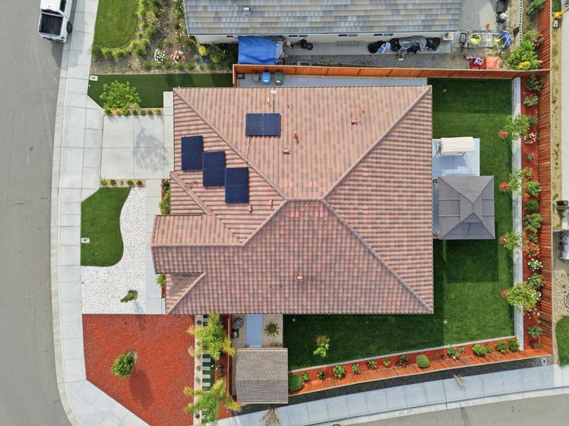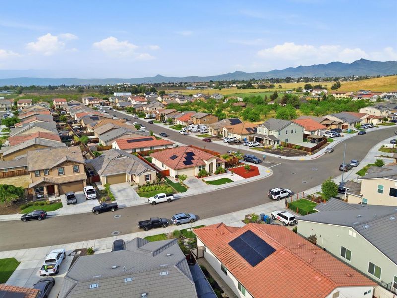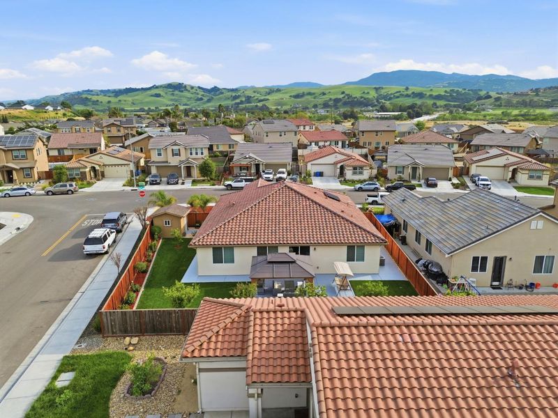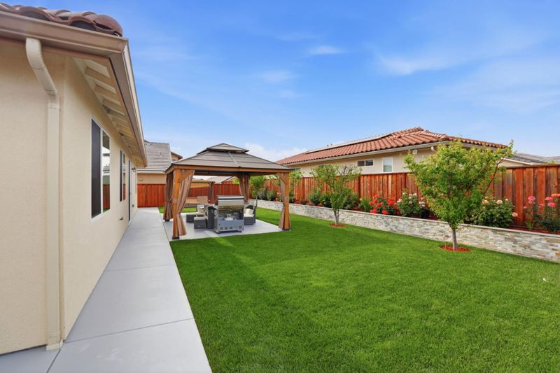 Looking for a blend of luxury and tranquility? This stunning 4-bedroom, 3-bathroom home in the highly desirable Sunnyside Estates offers 2,210 sq. ft. of pristine living space that feels brand new. Situated on a massive 8,027 sq. ft. corner lot on the outskirts of Hollister, you'll enjoy a peaceful atmosphere surrounded by the scenic San Benito County foothills. The heart of the home is a chef-inspired kitchen featuring a huge central island and sleek stainless steel appliances, perfect for hosting. The thoughtful layout includes a private front bedroom and full bath separate from the other rooms, an ideal setup for guests, in-laws, or a teenager seeking their own space. The property shines with meticulous landscaping in both the front and back yards. A standout feature is the expansive side yard, currently hosting a custom storage shed but perfectly suited for conversion into RV or boat parking. Inside, the attention to detail continues into the garage, which features professional epoxy flooring and a fully finished interior ideal for a workshop, home gym, or the ultimate man cave. Don't miss this rare opportunity to own a turnkey home with extra space and premium upgrades in one of the area's most popular neighborhoods.