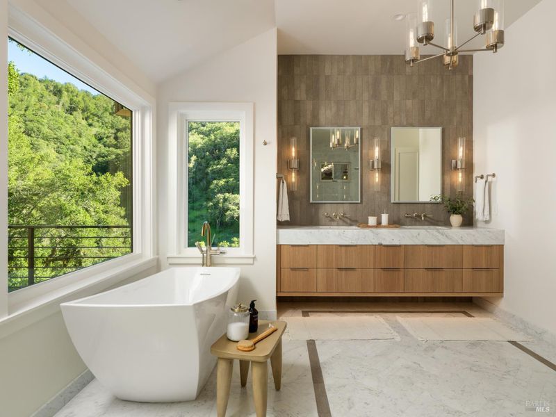 - Double Sinks, Shower Stall(s), Soaking Tub, Tile