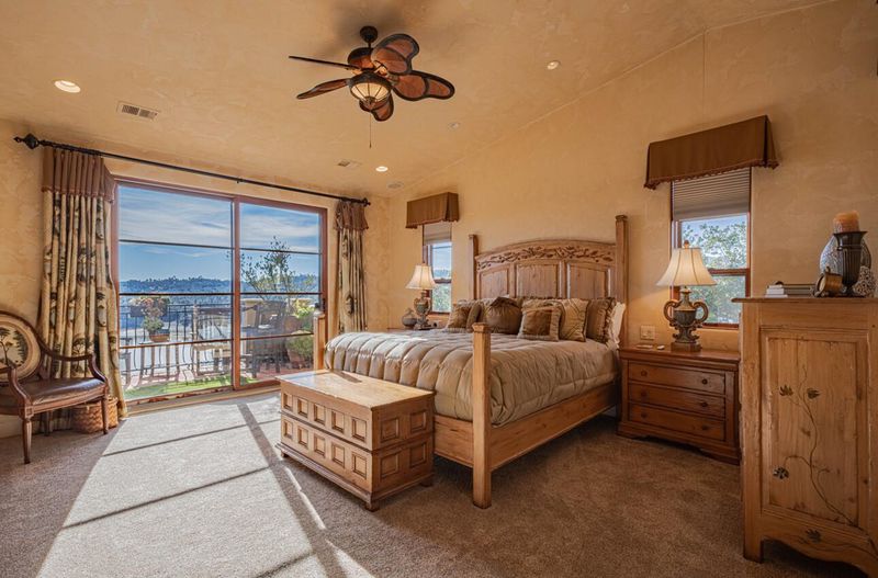 Welcome to 8730 Bluff Ct in Oak Shores at Lake Nacimiento where lakefront living is front and center! Set above the water with wide-open views, this custom-built 5BD/5.5BA home offers approx. 4,502 sq. ft. designed for either relaxed weekends or full-house gatherings. The main level sets the tone with exposed beams, rich woodwork, and a spacious kitchen that opens to the living and dining areas. The primary suite is also on this level, creating a comfortable, easy everyday layout. Step outside and you're immediately pulled toward the views, expansive decks and balconies made for morning coffee, sunset dinners, and long summer nights with friends. Downstairs, the home opens up even more. The terrace level features multiple bedrooms, including three with en-suite baths, along with a massive recreation room, ready for game tables, movie nights, or overflow guests. The lower level offers additional bedrooms, a wine cellar, a large sitting area, and additional storage, ideal for longer stays or hosting extended family. An oversized 3-car garage leaves room for boats, gear, and everything that comes with the lake lifestyle. With over 1,700 sq. ft. of balcony space and a thoughtful multi-level layout, this is a home built to be enjoyed by all!