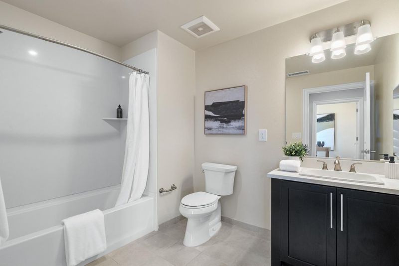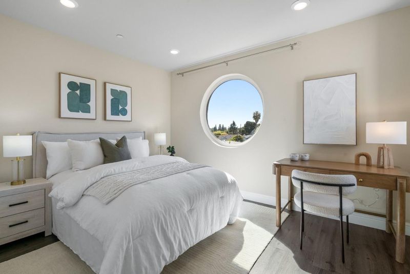 Rare opportunity to own a spacious corner unit that truly lives like a single-family home. This 4-bedroom, 3-bath layout offers great flexibility, including a desirable bedroom and full bath on the main level ideal for guests, extended family, or a home office. The bright, open living space is filled with natural light and enhanced by a quiet setting with no neighbors above or below. The kitchen features stone countertops, sleek cabinetry, stainless steel appliances, and a breakfast bar that flows seamlessly into the dining and living areas. Upstairs, you will find three additional bedrooms, all generously sized with great light and open views plus a huge walk-in closet. Nest thermostat for energy saving. Enjoy a secured building with amenities including a gym, clubhouse, and rooftop deck, plus two reserved garage parking spaces and additional 8x8x10 secured storage room. Prime Santa Clara location minutes to Nvidia, Apple, Santana Row, Google bus stop around corner, and walking distance to Santa Clara Town Center and Santa Clara University.
