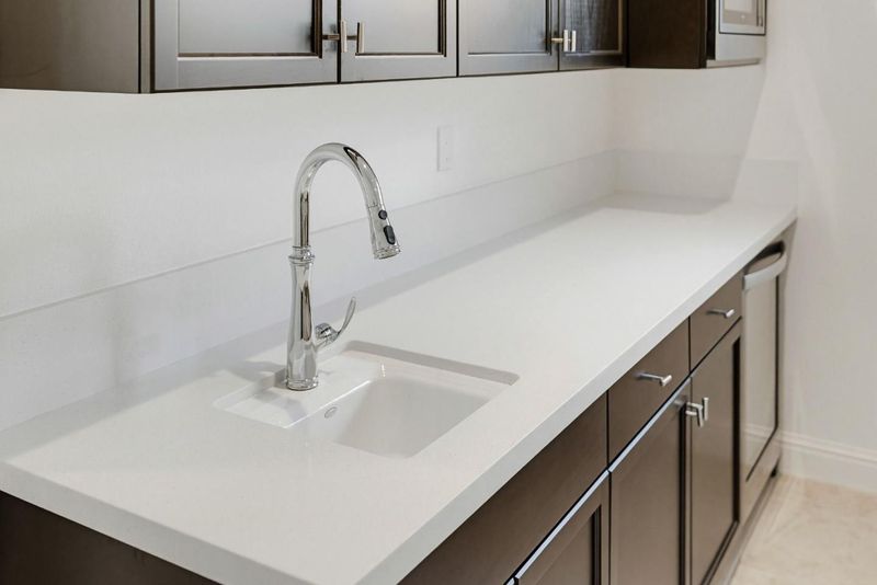 - Cooktop - Gas, Countertop - Quartz, Dishwasher, Exhaust Fan, Garbage Disposal, Hood Over Range, Island with Sink, Microwave, Oven - Built-In, Pantry