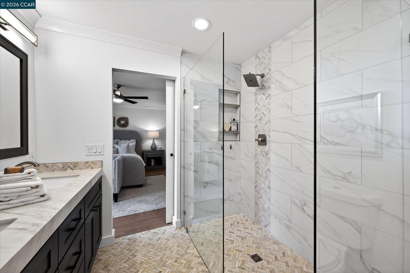 NORTHGATE NEW TO MARKET! Fabulous, fully remodeled home on a premium 0.25-acre court lot, ideal for entertaining. This stylish split-level floor plan offers 4 bedrooms, 3 full bathrooms, and 2,311± square feet of thoughtfully updated living space, with new flooring and modern finishes throughout. The main level showcases an inviting, open concept living room, formal dining area, and beautifully remodeled kitchen with white shaker cabinetry, quartz countertops, tile backsplash, stainless steel appliances, and a large island perfect for everyday living and gatherings. The adjacent dining area opens to the backyard, creating seamless indoor-outdoor flow. The upstairs primary suite features a private balcony, walk-in closet, and updated bathroom with dual vanities and a large walk-in shower. Two additional bedrooms and a remodeled hall bath complete the upper level. The lower level offers a generous family room with direct backyard access, a fourth bedroom or office, and a full bathroom - ideal for guests, remote work, or extended stays. The exceptional backyard is designed for entertaining and includes new landscaping, a deck, paver patio, garden, and outdoor kitchen/BBQ area. Conveniently located near top-rated Northgate schools (Walnut Acres Elementary, Foothill MS, NHS)