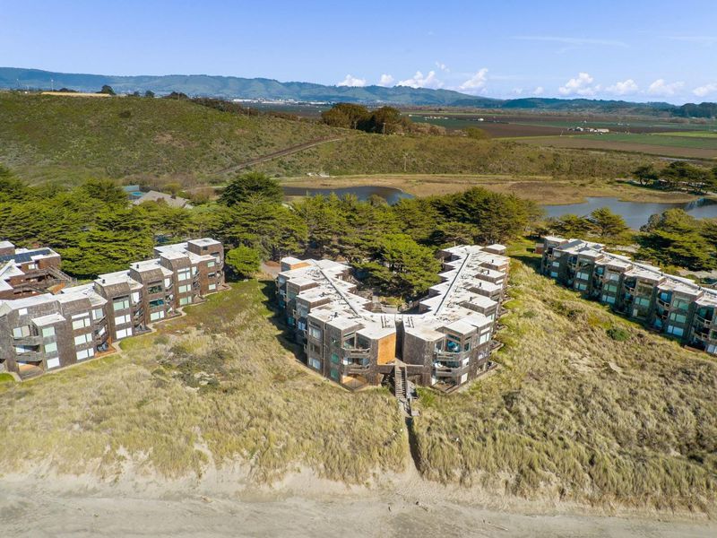Awe-inspiring ocean and Monterey Bay views. The ocean front single level 2 bedroom condo is located on the second story with ramp accessiblity and is nestled in the gated community of Pajaro Dunes. This prime location has direct beach access only a few steps away from your front door and is ideally located for that toes in the sand lifestyle you desire. Watch the waves from the primary bedroom and private patio or relax by the fire in the evenings listening to the crashing surf. This is the tranquil retreat you will enjoy no matter what season it is. Beautifully remodeled and updated to blend seemlessly with your oceanside surroundings this unit is move-in ready and includes most of the furnishings. Shorebirds Condos offers amazing amenities including landscaped grounds, electric car charging stations, pickleball and tennis courts, gift shop and scenic walking trails. These properties may be used as a primary homes, long or short term rental, or just as your own personal escape for when you need a break and hear the beach calling your name.